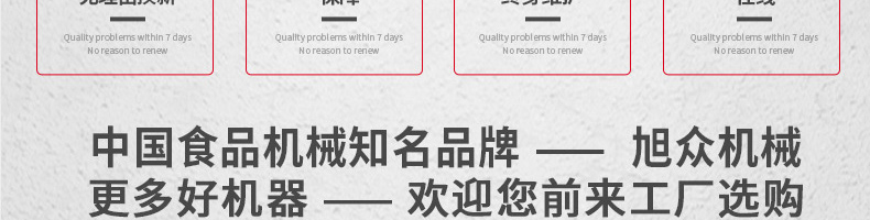 廣州旭眾食品機(jī)械有限公司是一家集科研開(kāi)發(fā),生產(chǎn)設(shè)計(jì),營(yíng)銷服務(wù)為一體的現(xiàn)代化生產(chǎn)企業(yè)。現(xiàn)代化生產(chǎn)車間,精湛制造技術(shù),所產(chǎn)機(jī)械歷經(jīng)市場(chǎng)重重考驗(yàn),不斷贏得海內(nèi)外客戶的贊譽(yù)。