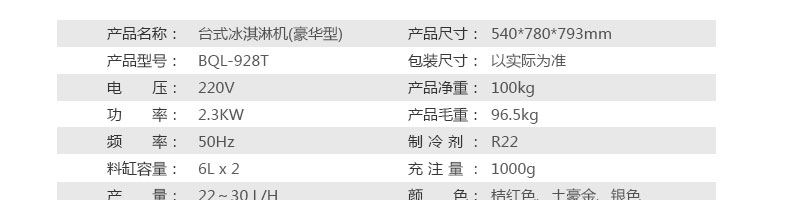 BQL-928T臺式冰淇淋機(jī),1.選用國際牌壓縮機(jī),輔以旭眾精湛工藝,大大縮短冰淇淋成型時間,高效節(jié)能;2.全新液晶智能觸控面板,簡單明了,多功能易操作;3.全新升級專業(yè)膨化泵,膨化率高,產(chǎn)量增加30%;4.一鍵清洗功能,省時方便;5.主要部件采用不銹鋼材質(zhì),時尚美觀,持久耐用;6.先進(jìn)的機(jī)械攪拌系統(tǒng),機(jī)器運行穩(wěn)定可靠,低噪音,產(chǎn)品口感爽滑細(xì)嫩。