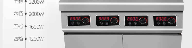 四頭柜式電磁爐,10檔調(diào)節(jié),滿足各種烹飪。3500W火力十足,輕松選擇合適火力。同時(shí)工作互不干擾單獨(dú)磁爐控制面板,設(shè)置不同大小檔數(shù),同時(shí)工作,互不干擾。