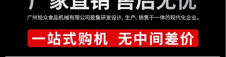 廣州旭眾食品機械有限公司是一家集科研開發(fā),生產(chǎn)設計,營銷服務為一體的現(xiàn)代化生產(chǎn)企業(yè)。現(xiàn)代化生產(chǎn)車間,精湛制造技術,所產(chǎn)機械歷經(jīng)市場重重考驗,不斷贏得海內(nèi)外客戶的贊譽。