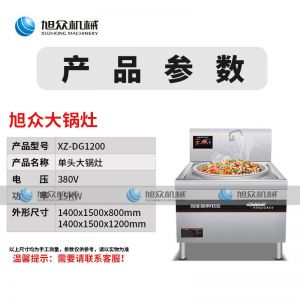XZ-DG1200-大鍋灶,商用大鍋灶、猛火效率高。適用于酒店/食堂/工地炒菜,均勻翻炒,快速出菜工程可定制。勁爆翻炒快速出菜輕松解決百人用餐,人多也不怕。八檔磁控輕松控溫根據(jù)需求調(diào)節(jié),操作簡(jiǎn)單,效率更出眾。