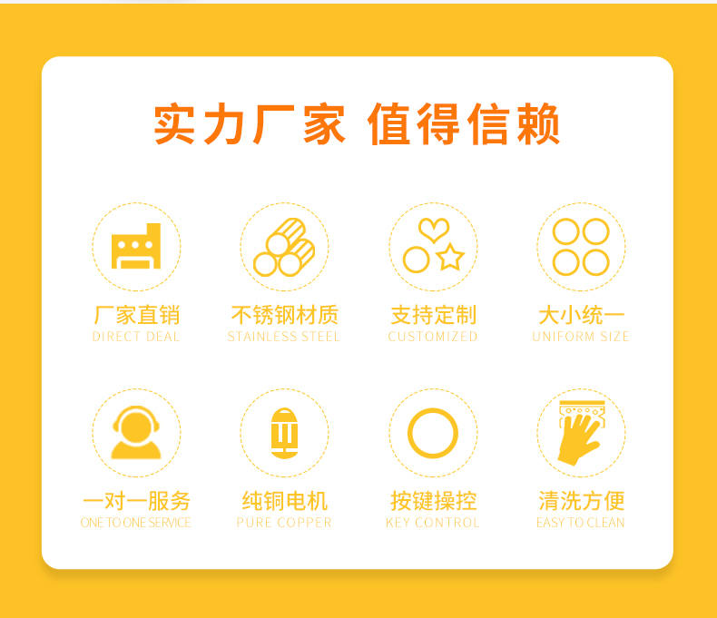 廣州旭眾食品機械有限公司是一家集科研開發(fā),生產(chǎn)設(shè)計,營銷服務(wù)為一體的現(xiàn)代化生產(chǎn)企業(yè)。現(xiàn)代化生產(chǎn)車間,精湛制造技術(shù),所產(chǎn)機械歷經(jīng)市場重重考驗,不斷贏得海內(nèi)外客戶的贊譽。