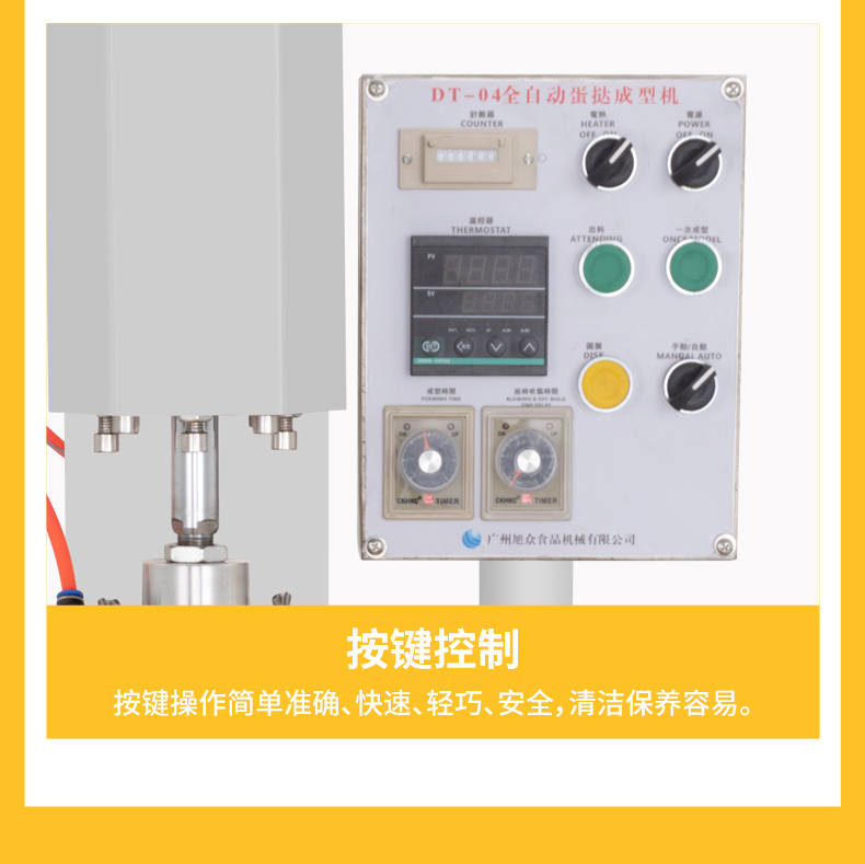 DT-04全自動蛋撻成型機,2-3秒快速成型。該機應(yīng)用于傳統(tǒng)蛋撻、葡式蛋撻及其它須印型之產(chǎn)品突破傳統(tǒng)用手捏,采用微電子控制成型,一個2-3秒,高效率。大小均勻一次成型按鍵操作簡單準(zhǔn)確,成型效果好,厚薄均勻,大小統(tǒng)-。層層起酥層次分明好葡式蛋撻皮,千層酥皮、松脆可口、唇齒留香、一口難忘。