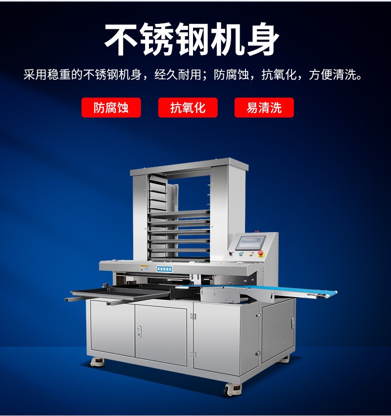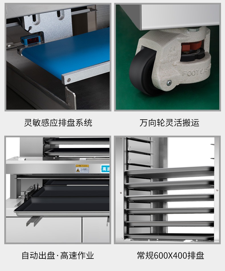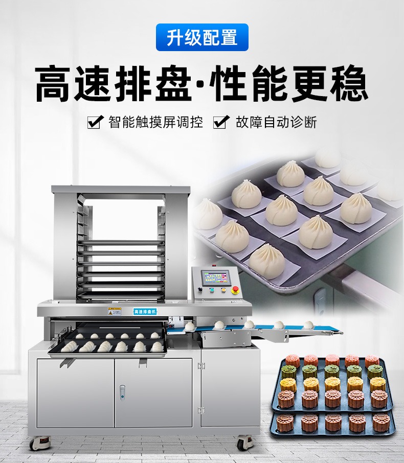 多功能商用高速排盤機(jī),自動(dòng)化程度高,可根據(jù)產(chǎn)品大小自由調(diào)節(jié)列數(shù)、排數(shù),自動(dòng)將產(chǎn)品自動(dòng)地排放在烘盤中,操作簡(jiǎn)單,運(yùn)行平穩(wěn)。智能觸屏面板。控制系統(tǒng)由三菱PLC和進(jìn)口觸摸屏組成,操作簡(jiǎn)單方便。具有故障自動(dòng)診斷,一目了然。