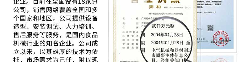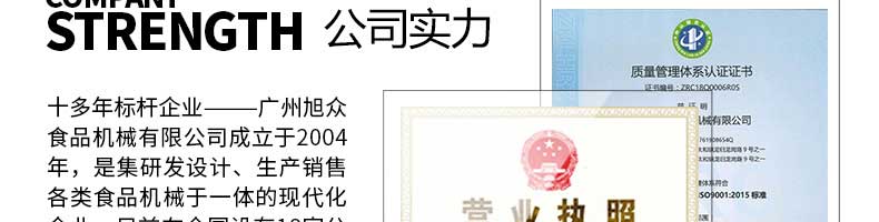 廣州旭眾食品機(jī)械有限公司是一家集科研開發(fā),生產(chǎn)設(shè)計,營銷服務(wù)為一體的現(xiàn)代化生產(chǎn)企業(yè)?,F(xiàn)代化生產(chǎn)車間,精湛制造技術(shù),所產(chǎn)機(jī)械歷經(jīng)市場重重考驗,不斷贏得海內(nèi)外客戶的贊譽(yù)。