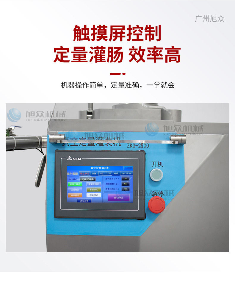 XZ-ZKG2800真空灌腸機(jī),真空葉片灌裝機(jī)連續(xù)作業(yè)加料后不需停機(jī),可灌肉粒&肉糜實(shí)用性強(qiáng)灌各種腸可做烤腸、親親腸、廣式臘腸、火鍋腸等連續(xù)灌制長(zhǎng)腸。
