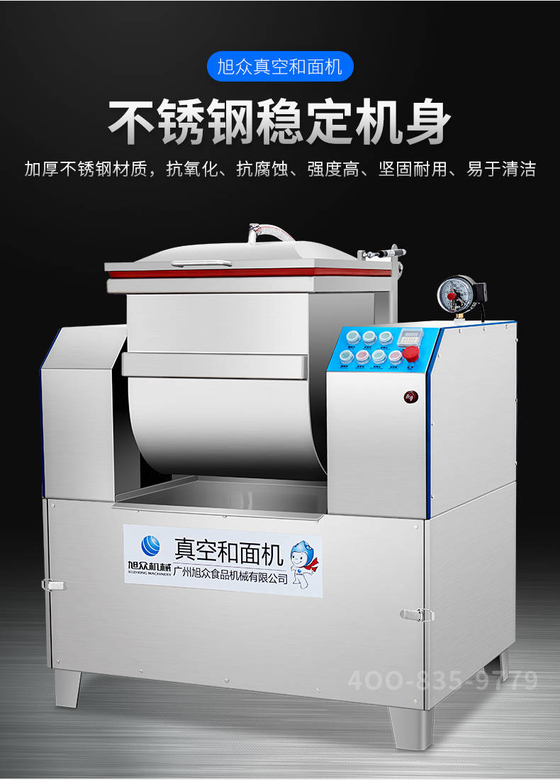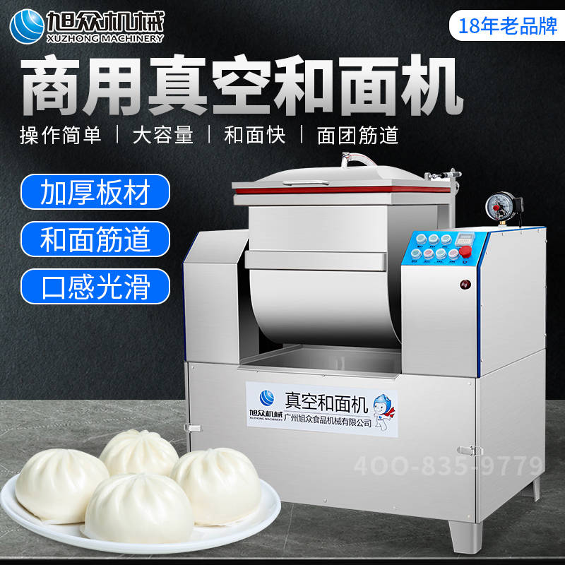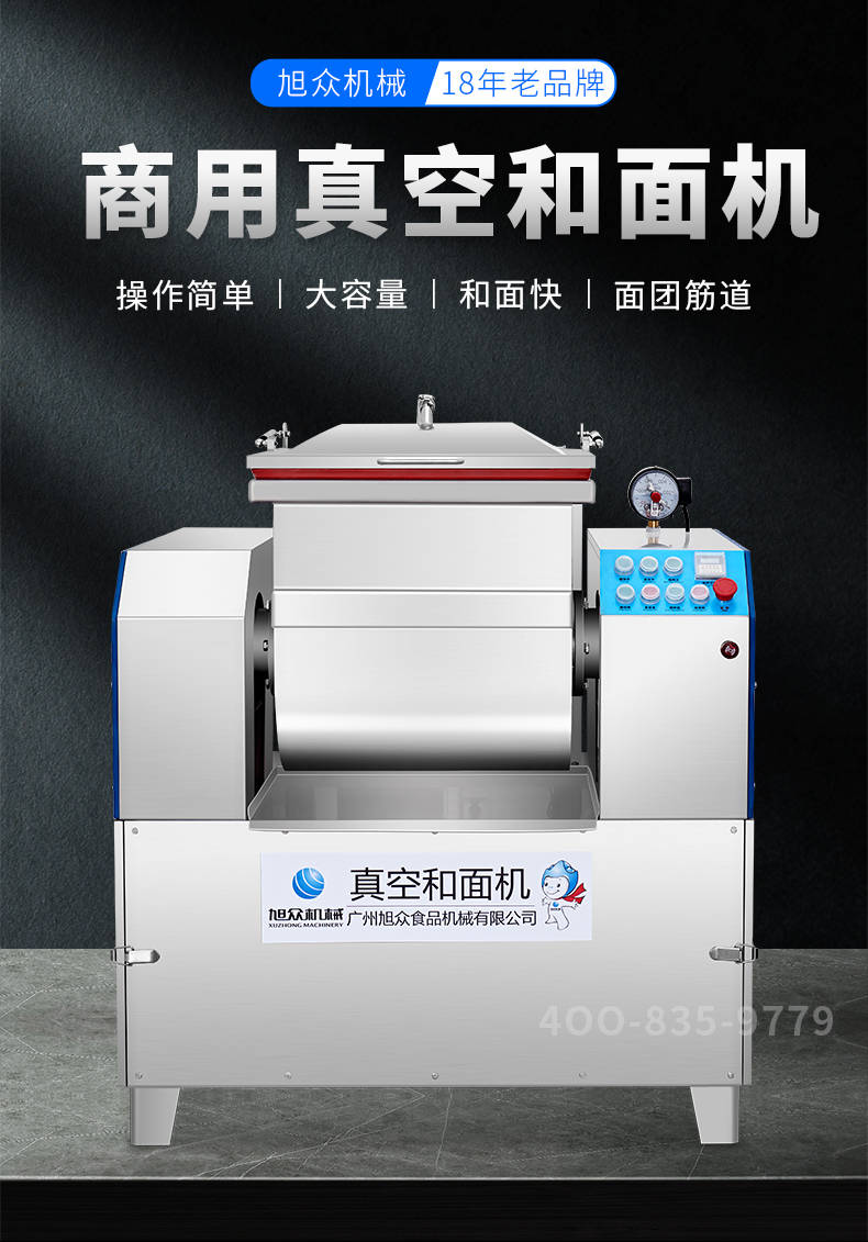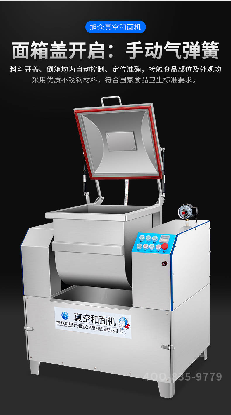 XZZK-25真空和面機(jī),商用真空和面機(jī),操作簡(jiǎn)單、大容量、和面快、面團(tuán)筋道。在真空狀態(tài)下模擬手工和面的原理,和面過程在真空負(fù)壓下拌和,使面粉中的蛋白質(zhì)在短時(shí)間內(nèi)、充分的吸收水分,使面筋網(wǎng)絡(luò)快速形成。