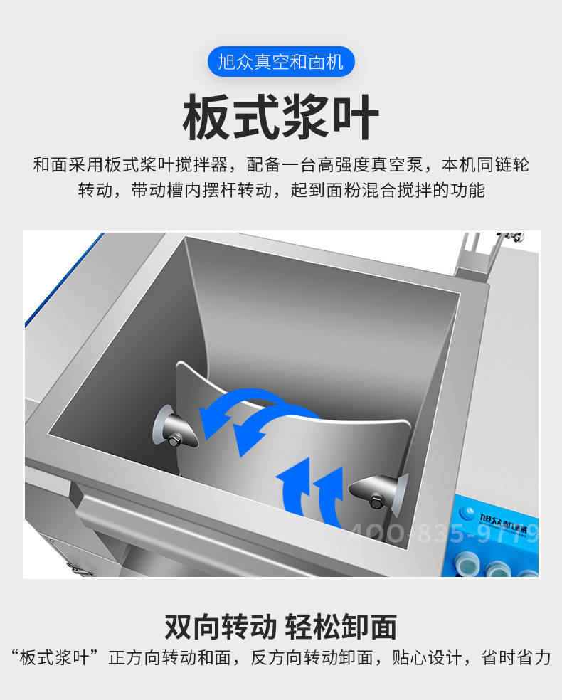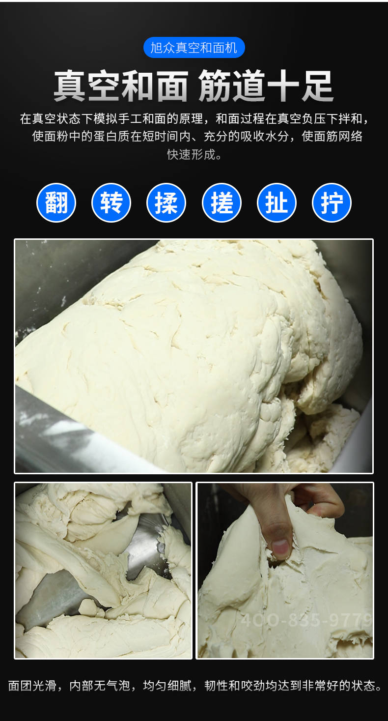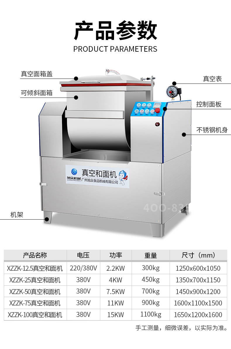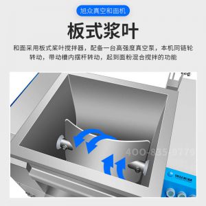 XZZK-25真空和面機(jī),商用真空和面機(jī),操作簡(jiǎn)單、大容量、和面快、面團(tuán)筋道。在真空狀態(tài)下模擬手工和面的原理,和面過程在真空負(fù)壓下拌和,使面粉中的蛋白質(zhì)在短時(shí)間內(nèi)、充分的吸收水分,使面筋網(wǎng)絡(luò)快速形成。