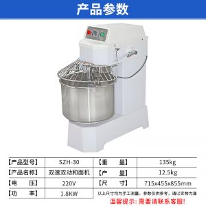 SZH-30型雙速雙動(dòng)和面機(jī),本機(jī)適合攪拌各種面包、包子、饅頭、湯圓、披薩餅面團(tuán),專業(yè)設(shè)計(jì)避免面團(tuán)過(guò)分升溫并確保面團(tuán)含氧量。過(guò)載、缺相保護(hù)裝置,防護(hù)罩安全連動(dòng)裝置。