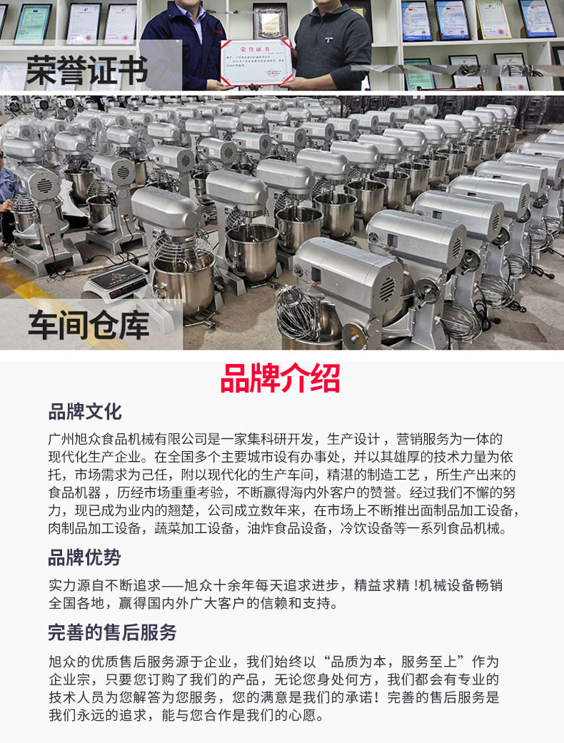 廣州旭眾食品機(jī)械有限公司是一家集科研開(kāi)發(fā),生產(chǎn)設(shè)計(jì),營(yíng)銷服務(wù)為一體的現(xiàn)代化生產(chǎn)企業(yè)?,F(xiàn)代化生產(chǎn)車間,精湛制造技術(shù),所產(chǎn)機(jī)械歷經(jīng)市場(chǎng)重重考驗(yàn),不斷贏得海內(nèi)外客戶的贊譽(yù)。