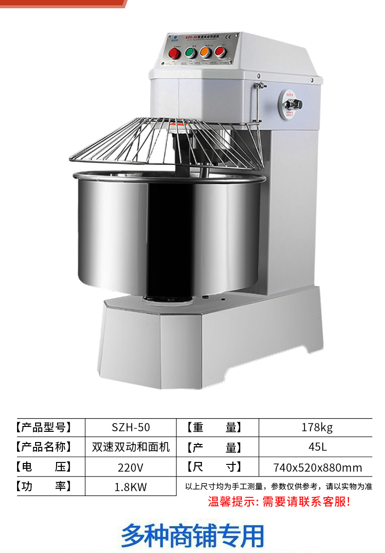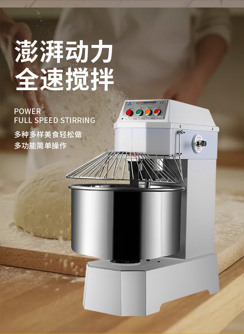 SZH-50型雙速雙動(dòng)和面機(jī),本機(jī)適合攪拌各種面包、包子、饅頭、湯圓、披薩餅面團(tuán),專業(yè)設(shè)計(jì)避免面團(tuán)過分升溫并確保面團(tuán)含氧量。過載、缺相保護(hù)裝置,防護(hù)罩安全連動(dòng)裝置。