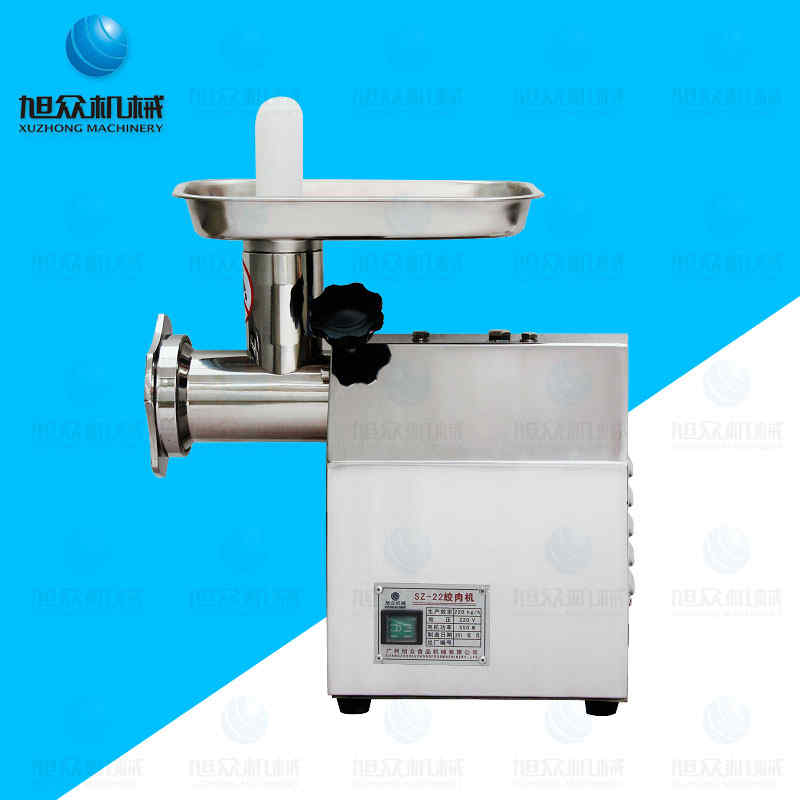 SZ-22 電動(dòng)絞肉機(jī),電動(dòng)絞肉機(jī)的校孔直徑為6、8mm,本機(jī)優(yōu)點(diǎn)具有電耐用、方便快捷、結(jié)構(gòu)緊湊、外形美觀、操作方便、效率高、耗電少、清潔保養(yǎng)容易、安全衛(wèi)生等優(yōu)點(diǎn)。采用全封閉齒輪傳動(dòng),結(jié)構(gòu)緊湊,運(yùn)轉(zhuǎn)平穩(wěn),工作可靠,且維修方便;絞肉機(jī)頭及接觸食品的零部件都采用不銹鋼制造,安全無(wú)污染;機(jī)殼線條流暢,沒(méi)有可污的縫隙及無(wú)傷害操作者的銳邊,易于清潔。