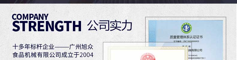 廣州旭眾食品機(jī)械有限公司是一家集科研開發(fā),生產(chǎn)設(shè)計(jì),營銷服務(wù)為一體的現(xiàn)代化生產(chǎn)企業(yè)?,F(xiàn)代化生產(chǎn)車間,精湛制造技術(shù),所產(chǎn)機(jī)械歷經(jīng)市場(chǎng)重重考驗(yàn),不斷贏得海內(nèi)外客戶的贊譽(yù)。
