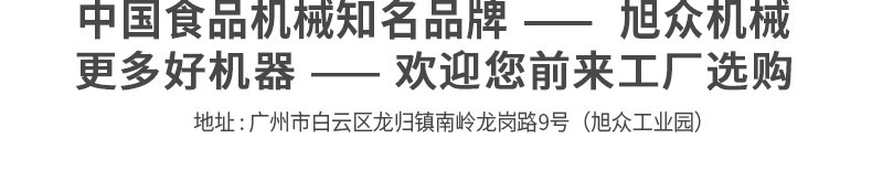 廣州旭眾食品機(jī)械有限公司是一家集科研開發(fā),生產(chǎn)設(shè)計(jì),營銷服務(wù)為一體的現(xiàn)代化生產(chǎn)企業(yè)?,F(xiàn)代化生產(chǎn)車間,精湛制造技術(shù),所產(chǎn)機(jī)械歷經(jīng)市場(chǎng)重重考驗(yàn),不斷贏得海內(nèi)外客戶的贊譽(yù)。