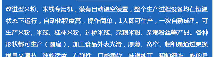 SZ-30米粉機,生產(chǎn)多樣性可生產(chǎn)米粉、米線、粉絲、粉條、、年糕、玉米面條、各種雜糧粉絲、各種面條、雜糧面條、彩色面條以及以紅薯、玉米、大豆、蠶豆等制成淀粉為原料的等多種食品而且每種食品厚薄、粗細等規(guī)格可根據(jù)需要任意調整。