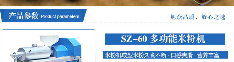 SZ-60多功能米粉機(jī),生產(chǎn)多樣性可生產(chǎn)米粉、米線、粉絲、粉條、、年糕、玉米面條、各種雜糧粉絲、各種面條、雜糧面條、彩色面條以及以紅薯、玉米、大豆、蠶豆等制成淀粉為原料的等多種食品而且每種食品厚薄、粗細(xì)等規(guī)格可根據(jù)需要任意調(diào)整。