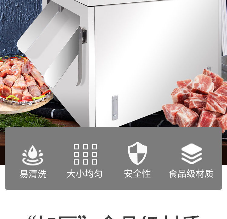 XZW-300魚禽類剁塊機(jī),色禽類剁塊機(jī)適合切凍肉帶骨/不帶骨?!凹雍瘛笔称芳壊馁|(zhì)安全衛(wèi)生質(zhì)量保證。傳送帶推進(jìn)物料提高效率節(jié)省力氣。