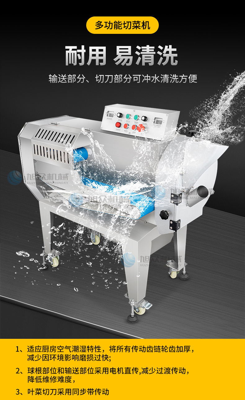 XZ-688A切菜機,占地使用面積小機器小,省空間,適合飯店、食堂、酒店等使用。省事省力省人工1小時加工2000斤葉菜切刀速度為1104轉(zhuǎn)/分,切絲、切片、切丁、刀速371轉(zhuǎn)/分。