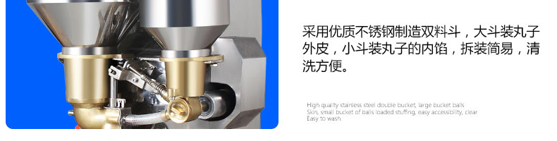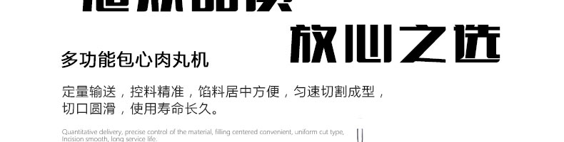 SZ-602包心肉丸機(jī),可生產(chǎn)包心魚丸、包心豬肉丸、撒尿牛肉丸、爆汁小魚丸等多種球形醬湯類包餡產(chǎn)品。操控性強、穩(wěn)定性高、出品率穩(wěn)定;可抽皮增餡,做到皮薄餡多。