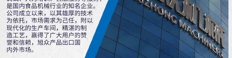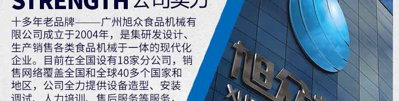 廣州旭眾食品機(jī)械有限公司是一家集科研開發(fā),生產(chǎn)設(shè)計(jì),營(yíng)銷服務(wù)為一體的現(xiàn)代化生產(chǎn)企業(yè)。現(xiàn)代化生產(chǎn)車間,精湛制造技術(shù),所產(chǎn)機(jī)械歷經(jīng)市場(chǎng)重重考驗(yàn),不斷贏得海內(nèi)外客戶的贊譽(yù)。