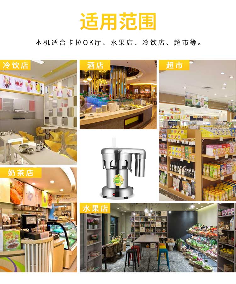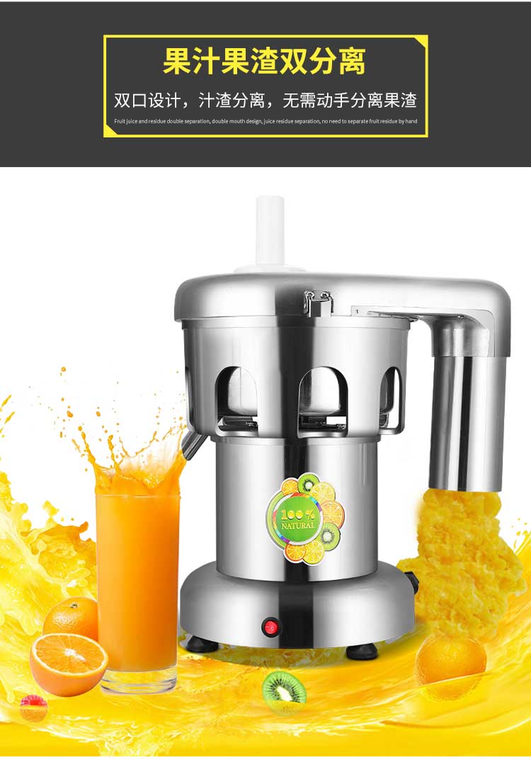 WF-A2000商用榨汁機(jī),該機(jī)所榨出的汁液是現(xiàn)榨的原汁,不含任何人為的防腐劑、穩(wěn)定劑、色素、香精、水等,凡與榨汁接觸的原件均為不銹鋼和無(wú)毒塑料聚丙烯和 A.B.S,食用安全。