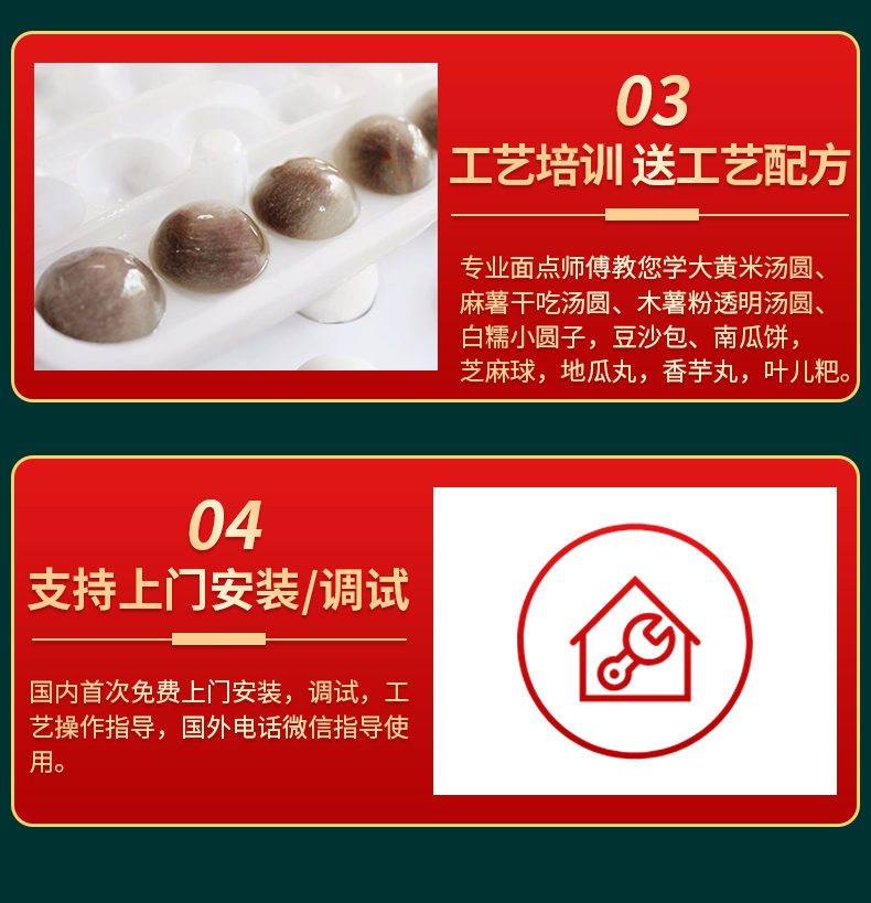 4000C湯圓機,多功能湯圓機,運行穩(wěn)定、時產(chǎn)量高、大小可調(diào)。制品多樣性生產(chǎn)各種大小規(guī)格不同的有餡湯圓,無餡湯圓、豆沙包、南瓜餅,芝麻球,地瓜丸,香芋丸,葉兒粑,青團,粘豆包等。