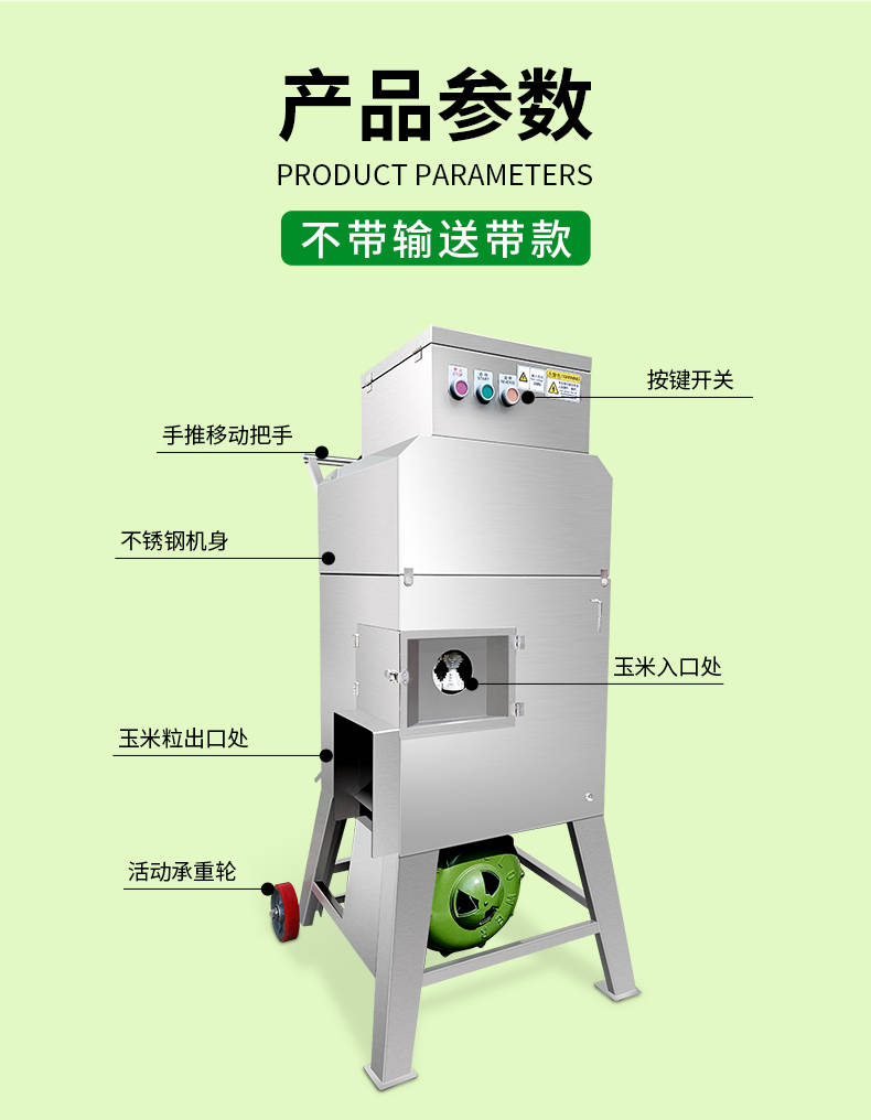 XZ-T138玉米脫粒機(jī),鮮玉米脫粒機(jī),高效脫粒。用于新鮮甜糯玉米脫粒工作,能很方便地把籽粒與梗桿分離。入料方便、脫凈率高、不碎粒不爛芯。每分鐘處理75個(gè)玉米穗。高效脫粒,滿足商用,籽粒產(chǎn)量約為500-600Kg/h