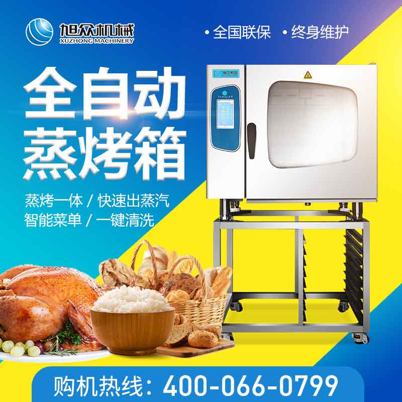 全自動蒸烤箱,旭眾全自動蒸烤箱,適用于餐館、酒樓、快餐店、超市、酒店、學(xué)習(xí)等。多層大容量,智能預(yù)設(shè)菜單,熱風(fēng)燒烤均勻出色