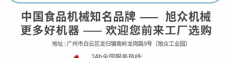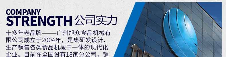 廣州旭眾食品機(jī)械有限公司是一家集科研開發(fā),生產(chǎn)設(shè)計(jì),營銷服務(wù)為一體的現(xiàn)代化生產(chǎn)企業(yè)?,F(xiàn)代化生產(chǎn)車間,精湛制造技術(shù),所產(chǎn)機(jī)械歷經(jīng)市場重重考驗(yàn),不斷贏得海內(nèi)外客戶的贊譽(yù)。