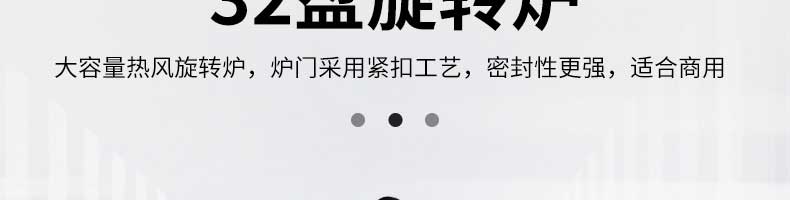 熱風旋轉(zhuǎn)爐系列,多項核心技術(shù)滿足您的需求大型熱風旋轉(zhuǎn)爐,雙風機設計,出口品質(zhì),準確調(diào)控,操作簡單。32盤旋轉(zhuǎn)爐大容量熱風旋轉(zhuǎn)爐,爐門釆用緊扣工藝,密封性更強,適合商用。