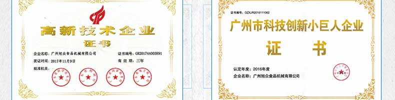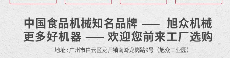 廣州旭眾食品機械有限公司是一家集科研開發(fā),生產(chǎn)設計,營銷服務為一體的現(xiàn)代化生產(chǎn)企業(yè)。現(xiàn)代化生產(chǎn)車間,精湛制造技術(shù),所產(chǎn)機械歷經(jīng)市場重重考驗,不斷贏得海內(nèi)外客戶的贊譽。