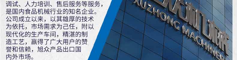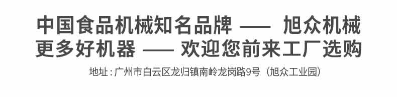 廣州旭眾食品機(jī)械有限公司是一家集科研開發(fā),生產(chǎn)設(shè)計,營銷服務(wù)為一體的現(xiàn)代化生產(chǎn)企業(yè)?,F(xiàn)代化生產(chǎn)車間,精湛制造技術(shù),所產(chǎn)機(jī)械歷經(jīng)市場重重考驗(yàn),不斷贏得海內(nèi)外客戶的贊譽(yù)。