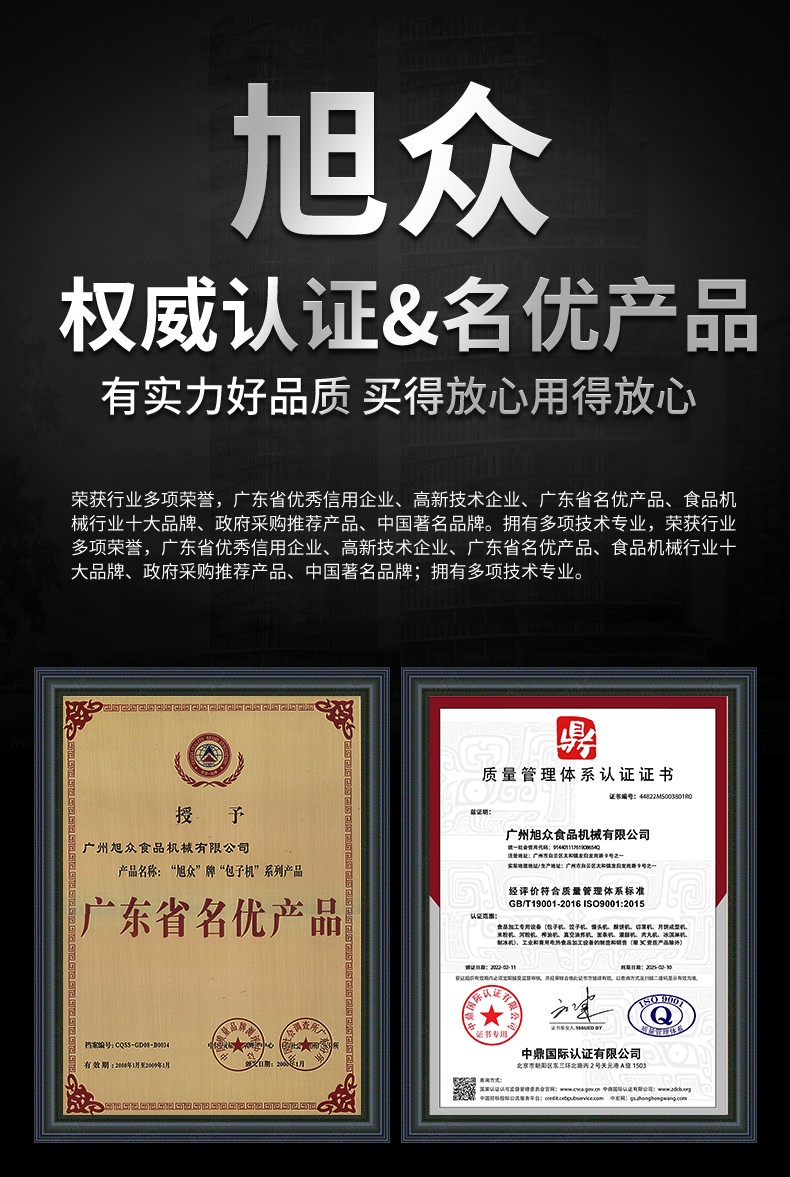 廣州旭眾食品機械有限公司是一家集科研開發(fā),生產(chǎn)設(shè)計,營銷服務(wù)為一體的現(xiàn)代化生產(chǎn)企業(yè)。現(xiàn)代化生產(chǎn)車間,精湛制造技術(shù),所產(chǎn)機械歷經(jīng)市場重重考驗,不斷贏得海內(nèi)外客戶的贊譽。