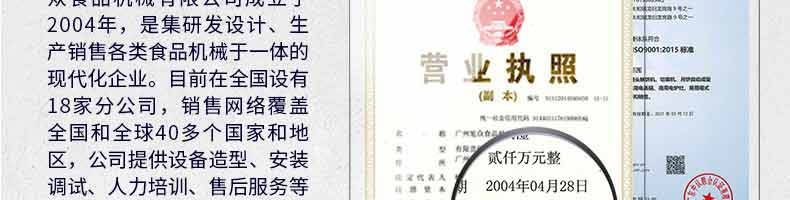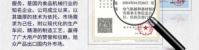 廣州旭眾食品機(jī)械有限公司是一家集科研開發(fā),生產(chǎn)設(shè)計(jì),營(yíng)銷服務(wù)為一體的現(xiàn)代化生產(chǎn)企業(yè)?,F(xiàn)代化生產(chǎn)車間,精湛制造技術(shù),所產(chǎn)機(jī)械歷經(jīng)市場(chǎng)重重考驗(yàn),不斷贏得海內(nèi)外客戶的贊譽(yù)。