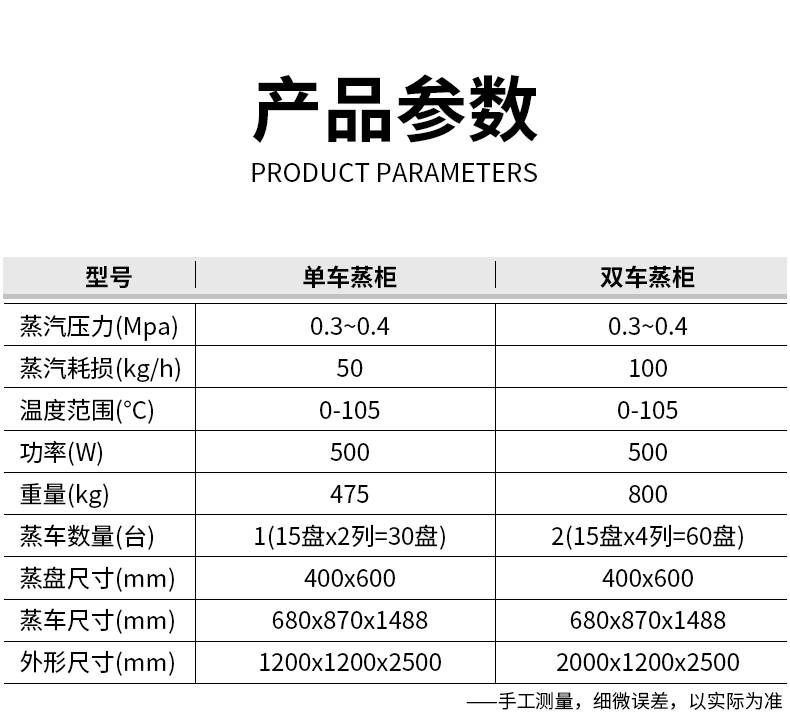 名稱單車蒸柜 電源220V 功率500w 產(chǎn)量請咨詢銷售員 尺寸蒸盤400×600,蒸車680X870×1488,外形1200X1200X2500 重量475 規(guī)格請咨詢銷售員 其他溫度范圍(°C)0-1050