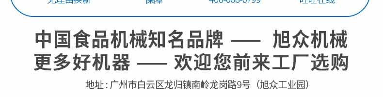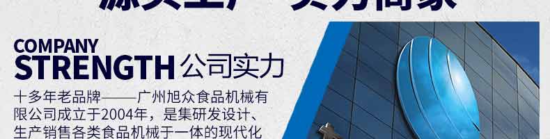 廣州旭眾食品機(jī)械有限公司是一家集科研開發(fā),生產(chǎn)設(shè)計(jì),營銷服務(wù)為一體的現(xiàn)代化生產(chǎn)企業(yè)。現(xiàn)代化生產(chǎn)車間,精湛制造技術(shù),所產(chǎn)機(jī)械歷經(jīng)市場重重考驗(yàn),不斷贏得海內(nèi)外客戶的贊譽(yù)。